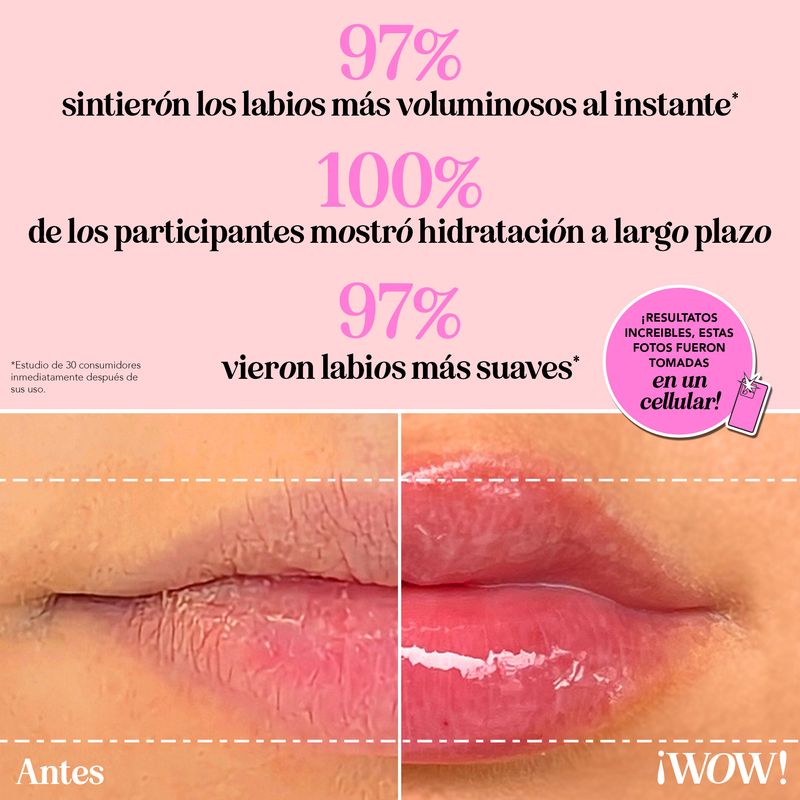 - El 97% dijo que los labios se ven con volumen al instante.