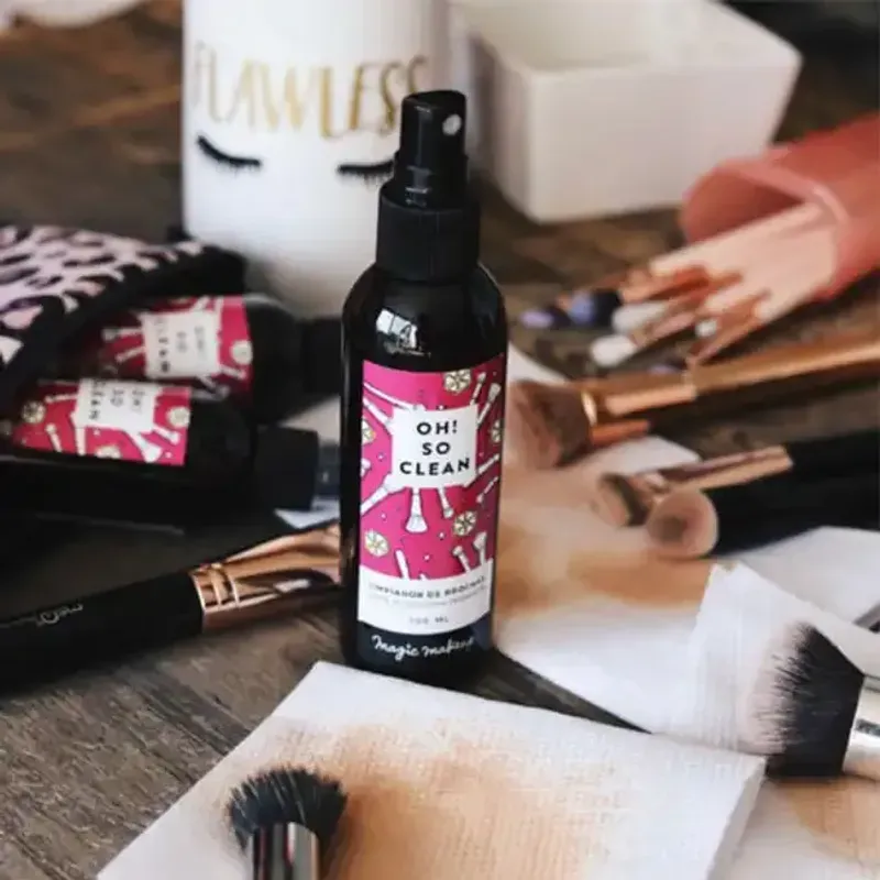 Un limpiador instantáneo de brochas de maquillaje que las limpia, acondiciona y desinfecta, sin enjuague y en segundos! Es muy útil, ya que alarga la vida útil de tus brochas y las mantiene suaves, gracias s su derivado ecológico del aceite de coco. Además, ayuda al cuidado de tu piel, a través de la limpieza y sanitización efectiva de las brochas de maquillaje. Tiene aroma suave, pero delicioso a verbena y es apto para todo tipo de brochas y disuelve cualquier tipo de producto sin dañarlas.