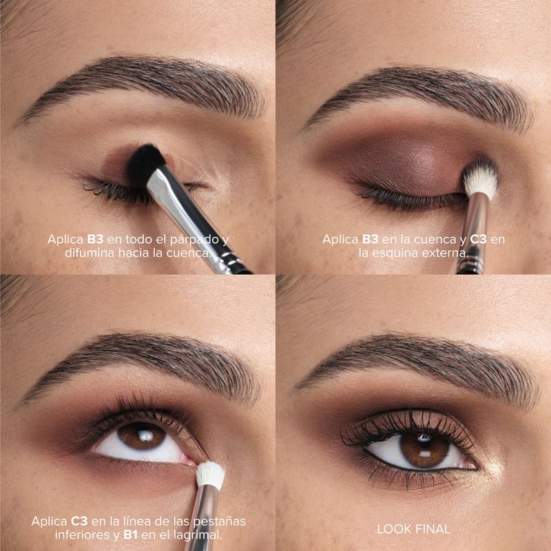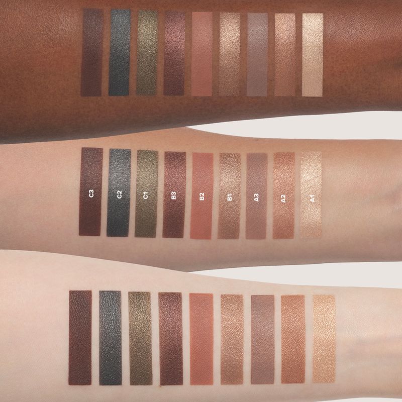 Una paleta de sombras en tamaño mini con 9 tonos de alto pigmento desde neutros cálidos hasta tonos ricos y audaces en acabados mate y metálico.