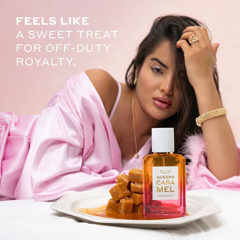 «¿Cómo se consigue que un aroma que resulte sofisticado y lujoso? Queens Caramel tiene un aspecto delicioso y apetecible, pero lo que me enamora cada vez que lo uso es la belleza y la sensación refinada de su aroma». —Bee Shapiro